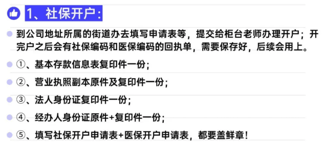 5、社保開戶應(yīng)當(dāng)在新公司成立的三十日內(nèi)完成開戶,需要注意的是社保和醫(yī)保是兩個(gè)獨(dú)立系統(tǒng),需要分別辦理;